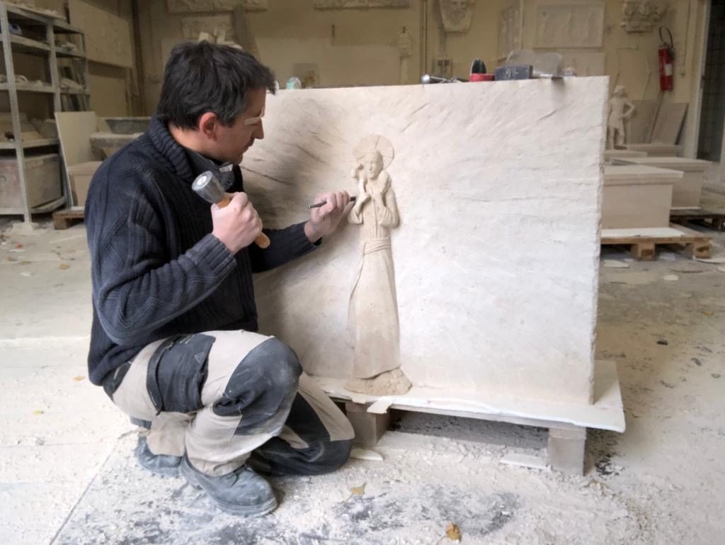Taille du décor du nouvel autel de Notre-Dame de Boulogne. (Crédit Bruno de Maistre)