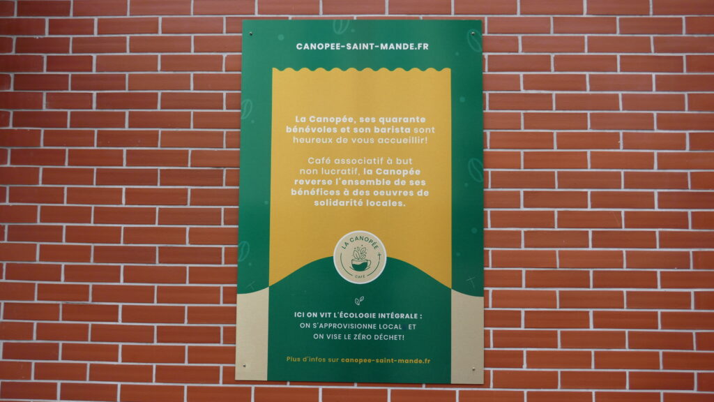 Construit en 2021, avec l’aide des Chantiers du Cardinal sur un ancien parking, entre l’église Notre-Dame de Saint-Mandé et le centre paroissial de la cité, à proximité d’une école primaire, d’un collège et d’un lycée, un café particulièrement original : la Canopée.