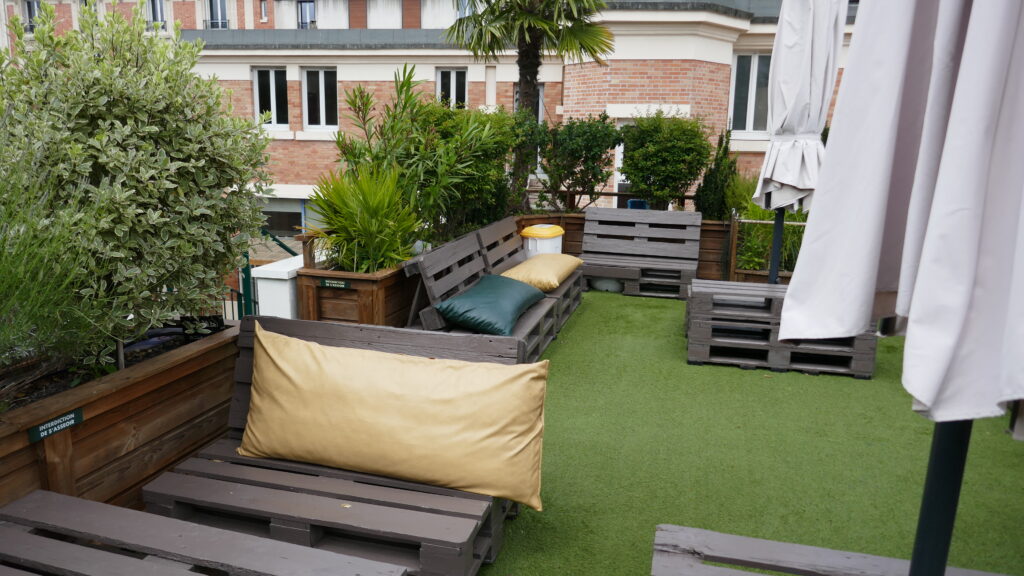 Et le succès est toujours au rendez-vous. C’est que l’état d’esprit, moderne et ouvert, des lieux plaît. Il contribue d’ailleurs au lien social de deux façons. En premier lieu, à l’intérieur du bar, au service en quelque sorte, c’est tout une équipe de bénévoles, d’âges et d’origines très différents- des jeunes qui donnent un peu de leur temps, des actifs et des retraités – qui s’active pour faire fonctionner le café, assurer les horaires quotidiens d’ouverture et préparer les petits plats. Devant le bar, du côté des consommateurs donc, attablés ou non, c’est aussi une population très variée qui défile : des jeunes des établissements d’enseignement environnants qui peuvent se retrouver là pour jouer au baby-foot, réviser au calme ou préparer leurs exposés ou leurs devoirs, des personnes qui travaillent dans le quartier ou des familles qui souhaitent profiter d’un moment de calme ou de détente, un espace pour les enfants ayant été aménagé côté cour, des poules dans le jardinet et des poissons rouges dans un petit bassin en terrasse pouvant aussi aiguiser leur curiosité.