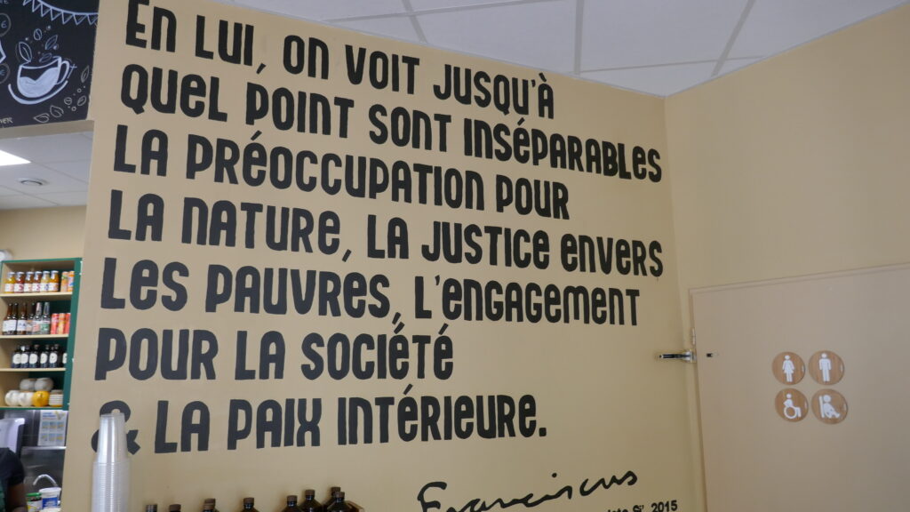 C’est un café paroissial et solidaire situé en plein centre de la commune de Saint-Mandé qui jouxte la ville de Paris. Mais il ne propose pas, contrairement à ce qu’on pourrait croire, des produits par principe bon marché pour une clientèle sans moyens. Il joue plutôt la carte de la qualité, du haut de gamme, des produits du terroir, des pâtisseries faites maison, avec pour objectif principal de dégager des bénéfices qui, eux, sont reversées à des œuvres.