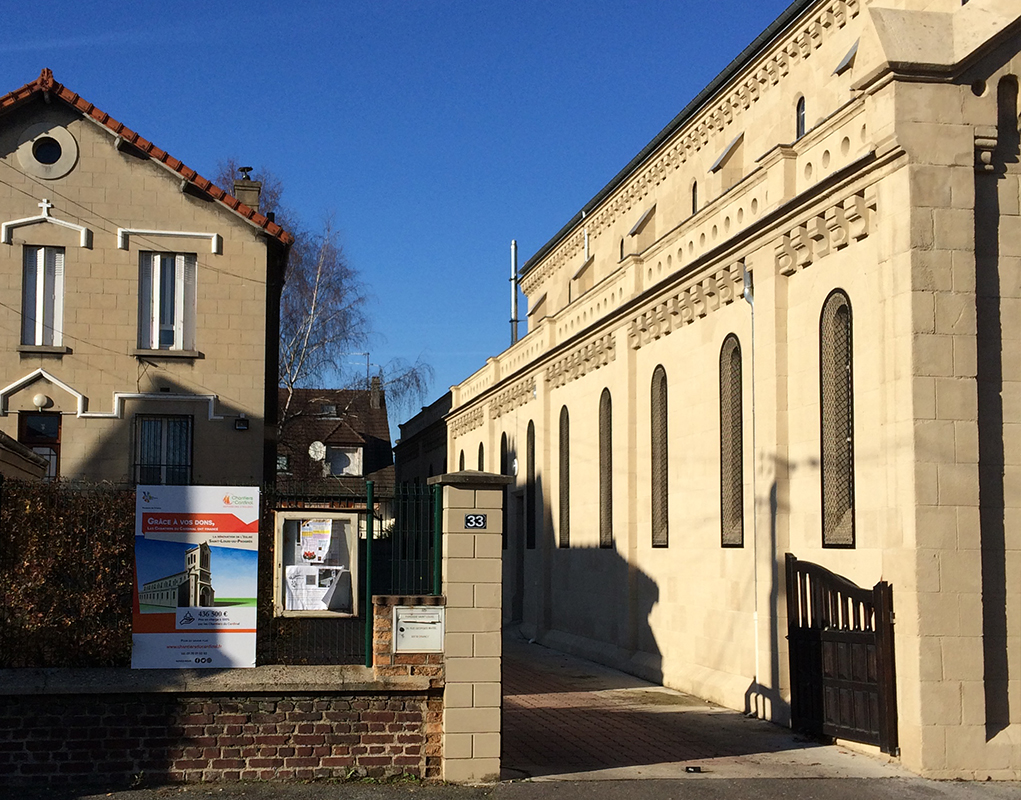 Devant la maison paroissiale Saint-Pierre-Saint-Paul à Montfermeil (94)