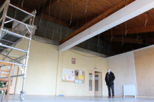 Dans une des salles de réunions, les infiltrations d’eau ont laissé des traces sur le sol. (Crédit CDC)