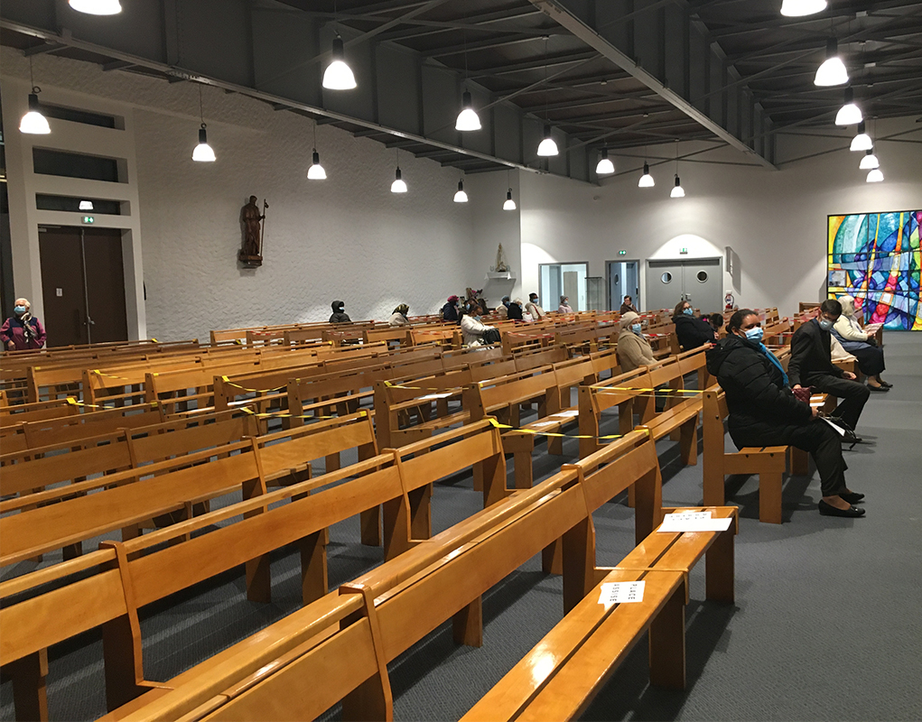 Pendant quelques mois en 2019, l’église avait été fermée pour les travaux. Les fidèles et le père Jérémie Aka Alofa se retrouvaient pour les messes dans un complexe sportif prêté par la mairie, puis dans une église voisine. Alors que le chantier allait s’achever, le second confinement à l’automne 2020, a encore empêché les paroissiens de se rassembler dans leur église autour de monseigneur Michel Pansard, évêque d’Evry-Corbeil-Essonnes, pour une belle fête d’inauguration. Mais les aléas des travaux et de l’actualité n’entament pas l’enthousiasme des paroissiens. « Il y a ici une communauté vivante, indique le curé,  beaucoup de personnes viennent de très loin pour participer aux messes du dimanche parce que elles savent qu’en arrivant ici elles vont avoir une messe animée. » C’est aussi la seule église de 400 places qui permet d’accueillir les grands événements du secteur.