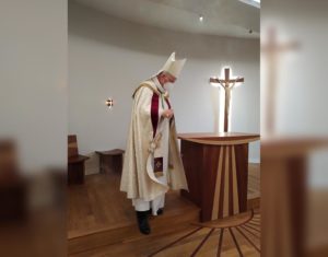 Mgr Bruno Valentin bénit la nouvelle chapelle Sainte-Clothilde à Versailles.