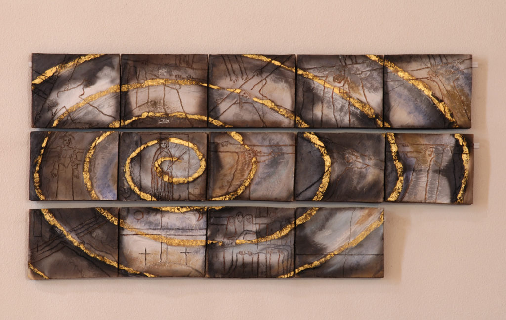 Le chœur est éclairé par une série de bandeaux de vitraux verticaux et une croix. Là encore, avec « cette idée que c’est l’eau qui coule » explique Anne Bernot. La plasticienne se souvient bien de sa réalisation pour cette église en 1996. « J’ai travaillé avec le maître-verrier Florent Chaboissier pour dessiner les cartons. » Le mobilier liturgique est l’œuvre du sculpteur Vincent Guiro. Il opte pour une grande sobriété : l’autel en marbre noir d’Irlande forme un joli contraste avec le bois blond du mur du chœur. Un Christ de procession, un ambon et un tabernacle en bronze complètent l’ensemble.