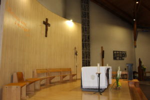 Vue intérieure de l’église Saint-Pierre-du-Lac à Créteil.