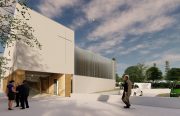 Brice Piechaczyk fait visiter à Bruno Kellet et Jérôme Tolot (ancien et l’actuel directeur général des Chantiers du Cardinal) le Grand projet de Notre-Dame-de-l’Ouye conçu et réalisé par l’agence Enia.