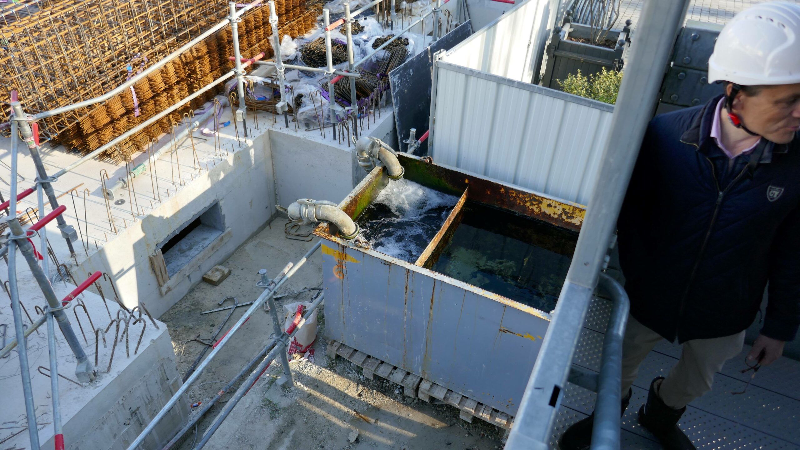 Les difficultés techniques ne manquent pourtant pas. Par exemple, la nappe phréatique sur laquelle pèse le sous-sol cuvelé continue d’être pompée, provoquant d’importants débits d’eau. Les flux, provenant de deux gros tuyaux débouchant dans une cuve, ne devraient se tarir que dans un an !