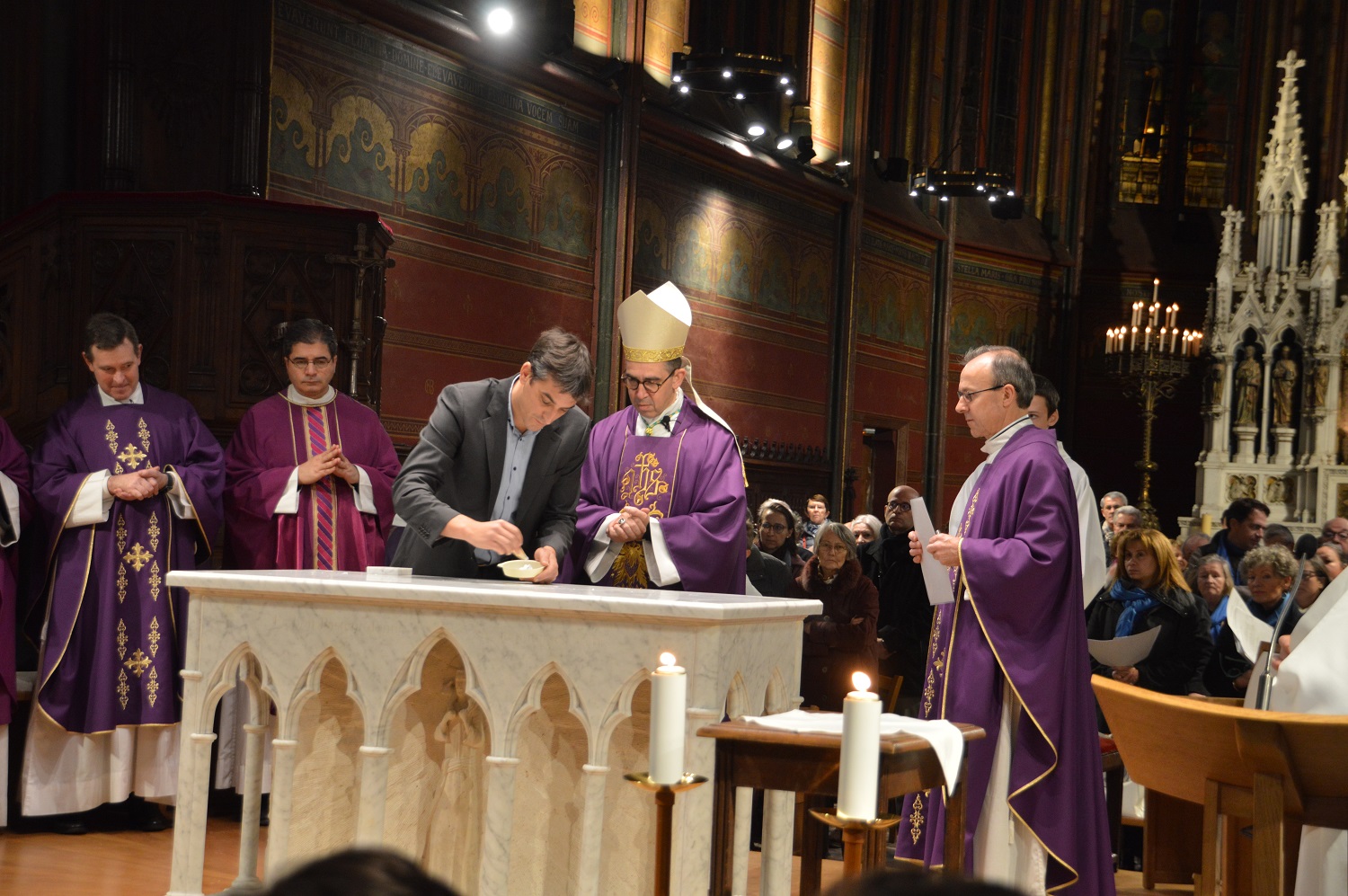 30 novembre 2019, encensement de l’autel dédicacé par monseigneur Mathieu Rougé, évêque de Nanterre.