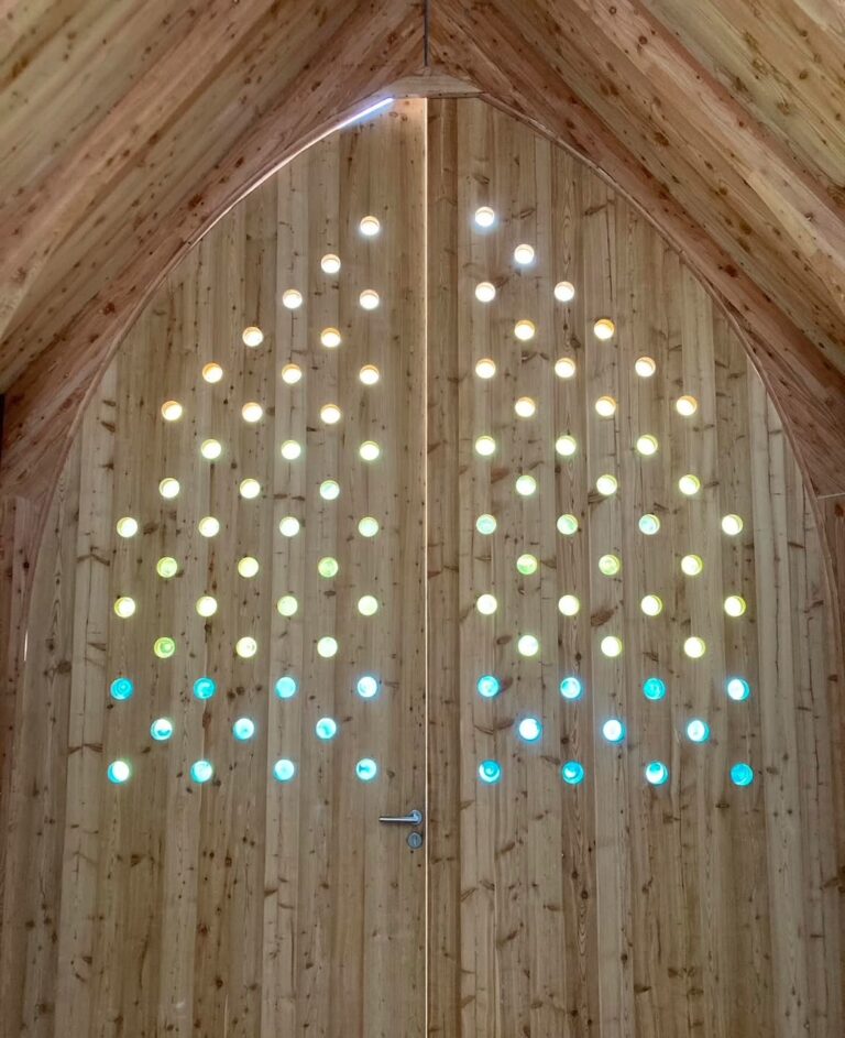 Bien que le reste du matériel liturgique n’ait pas encore reçu les subventions nécessaires, le tabernacle, lui est prêt à recevoir et abriter le corps du Christ, qui est le Cœur de la vie spirituelle . Les portes ont reçu leur cives * de couleur et l’aménagement intérieur est en voie de finition.*
