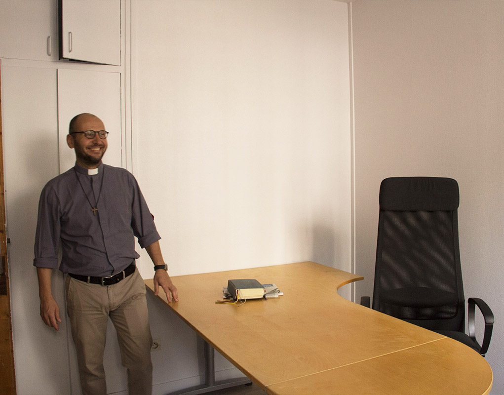 Le père Ségui et le vicaire, le père Charles Selvan, habitent eux au premier étage dont les travaux ont été rapidement menés. Chacun dispose d’une belle pièce avec salle de bains et petit kitchenette. Entre les deux, une salle à manger et une petite cuisine communes. Au rez-de-chaussé, les deux bureaux des prêtres ont été aménagés dans l’espace qui mène à l’église Saint-Jean.