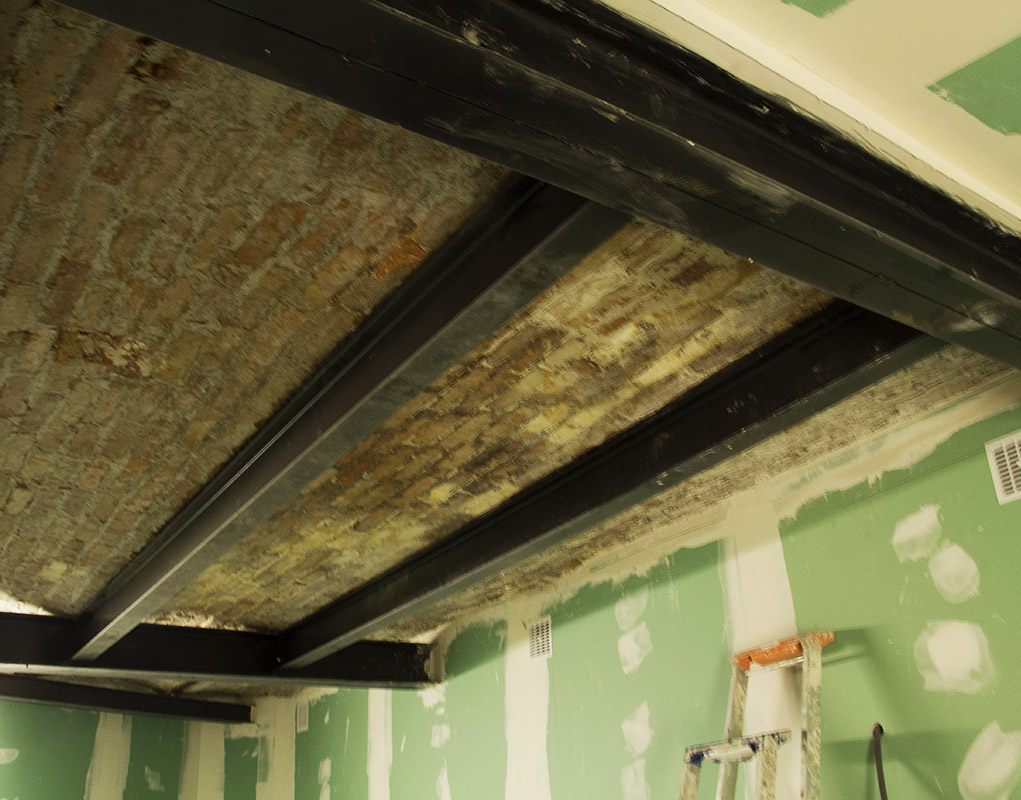L’une des trois chambres d’étudiants au dernier étage, en cours de rénovation.