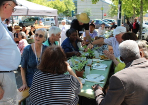 Paroissiens attablés au banquet de Sainte Claire de Vauréal