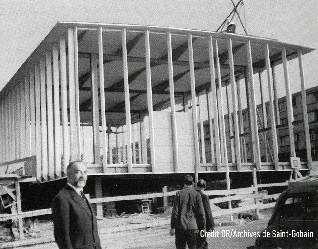 Mur-rideau à ossature acier. Image extraite de la publication Architecture de lumière (N°11, 1964)