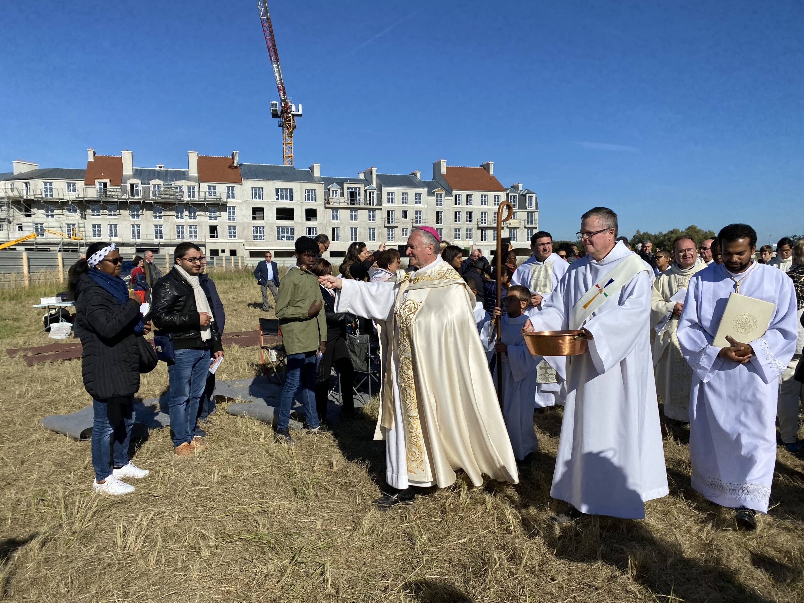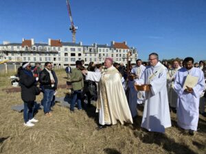 Mgr Jean-Yves Nahmias, évêque de Meaux, bénissant le terrain de Saint-Colomban. 16 octobre 2022.