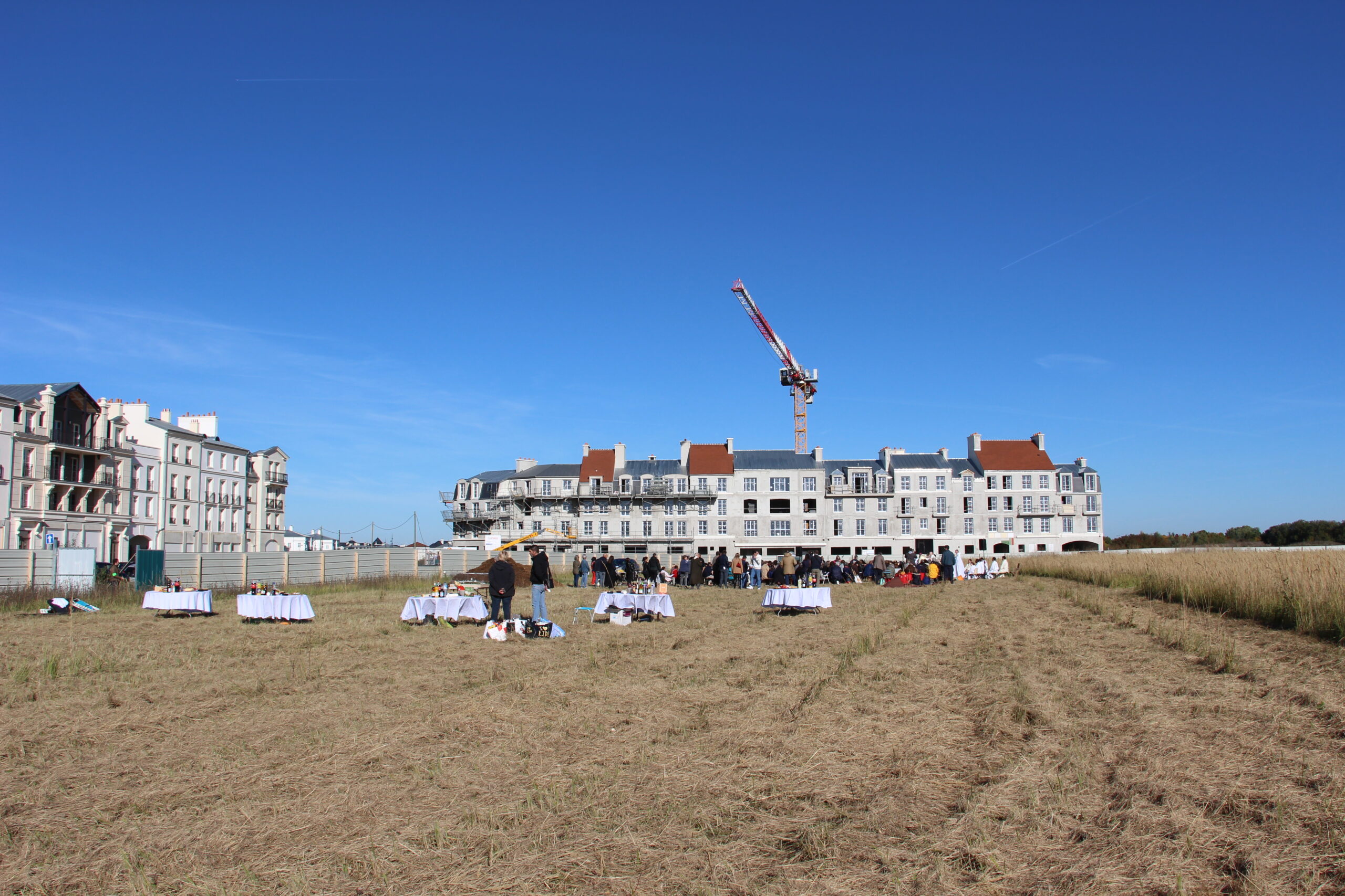 Sur ce vaste terrain d’un quartier en construction de Serris (77), s’élèveront l’église Saint-Colomban, le centre paroissial et culturel ainsi que le presbytère.