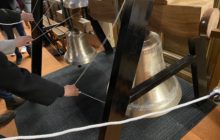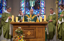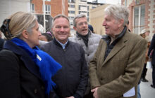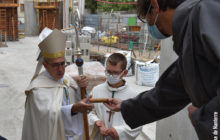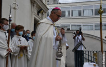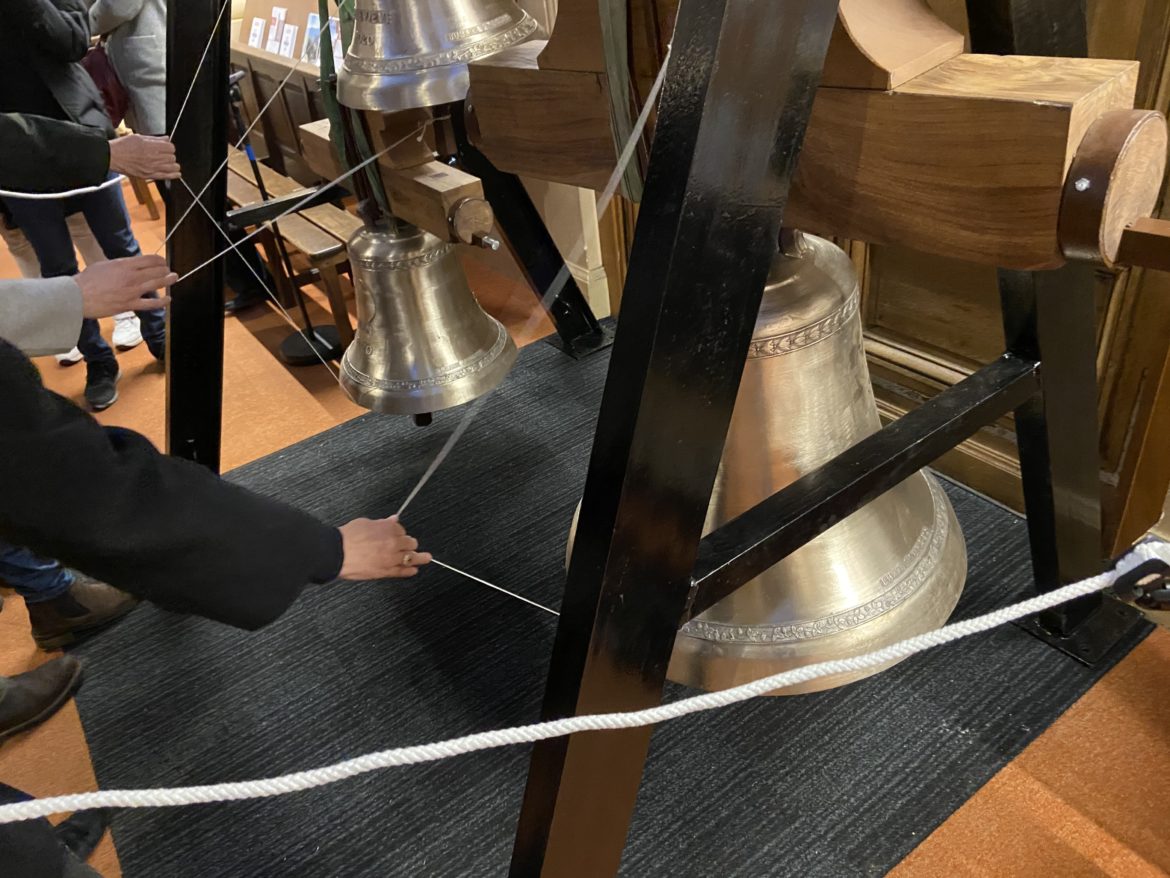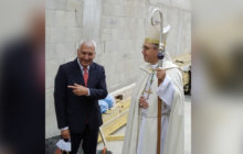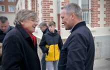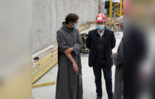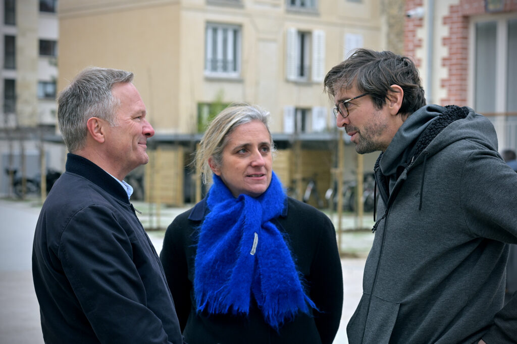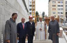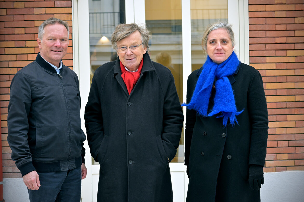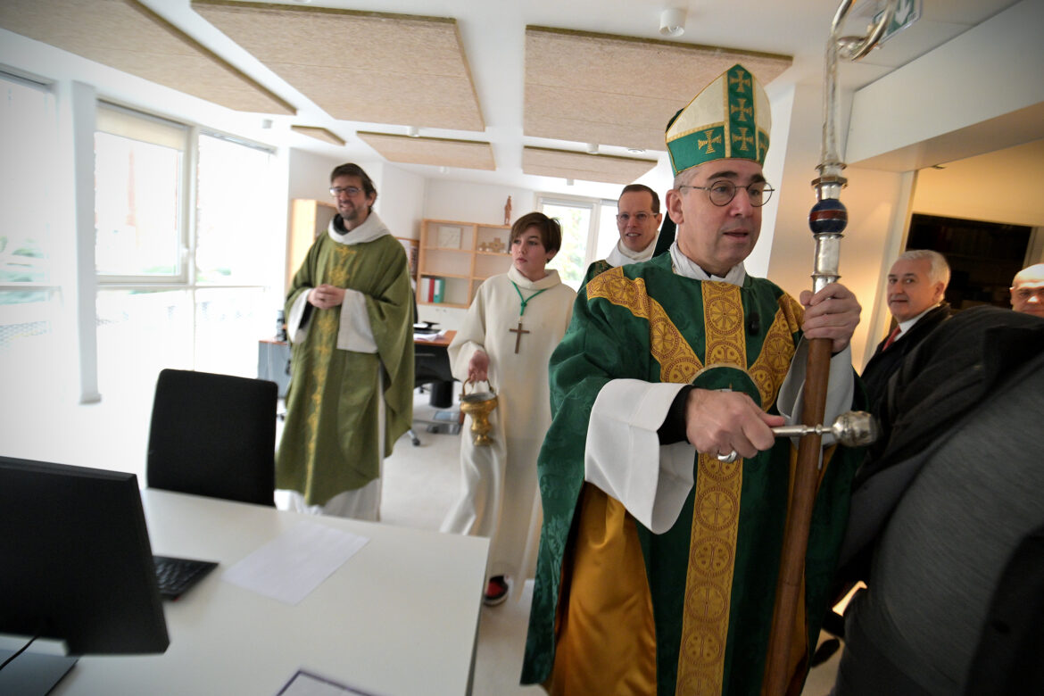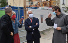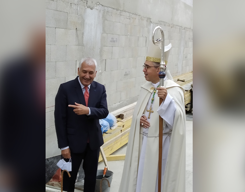 Mgr Matthieu Rougé est accompagné d’Alice Fabre et Jean-Pierre Gaspard, des Chantiers du Cardinal. GF/CDC