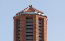 L’architecte qui a la charge de ce projet, c’est Jean-Marie Duthilleul, sensibilisé à ces questions religieuses quelques années auparavant par le cardinal Jean-Marie Lustiger qui lui confiera l’édification de l’église Saint-François de Molitor à Paris. Son idée ? Réaliser une cité paroissiale à Sainte-Cécile car « on peut y dormir, s’y restaurer, s’instruire, travailler, jouer, prier, et partout, s’y rencontrer. L’entrée de cette cité est marquée par un grand clocher, car c’est le Christ qui préside à toutes ces activités de la ville. Le Christ sera toujours présent dans toutes les relations qui se noueront entre ceux qui fréquenteront ces lieux. » Un clocher de briques rouges qui montre que cette cité fait bien partie de la ville afin d’y porter la bonne nouvelle du Christ.