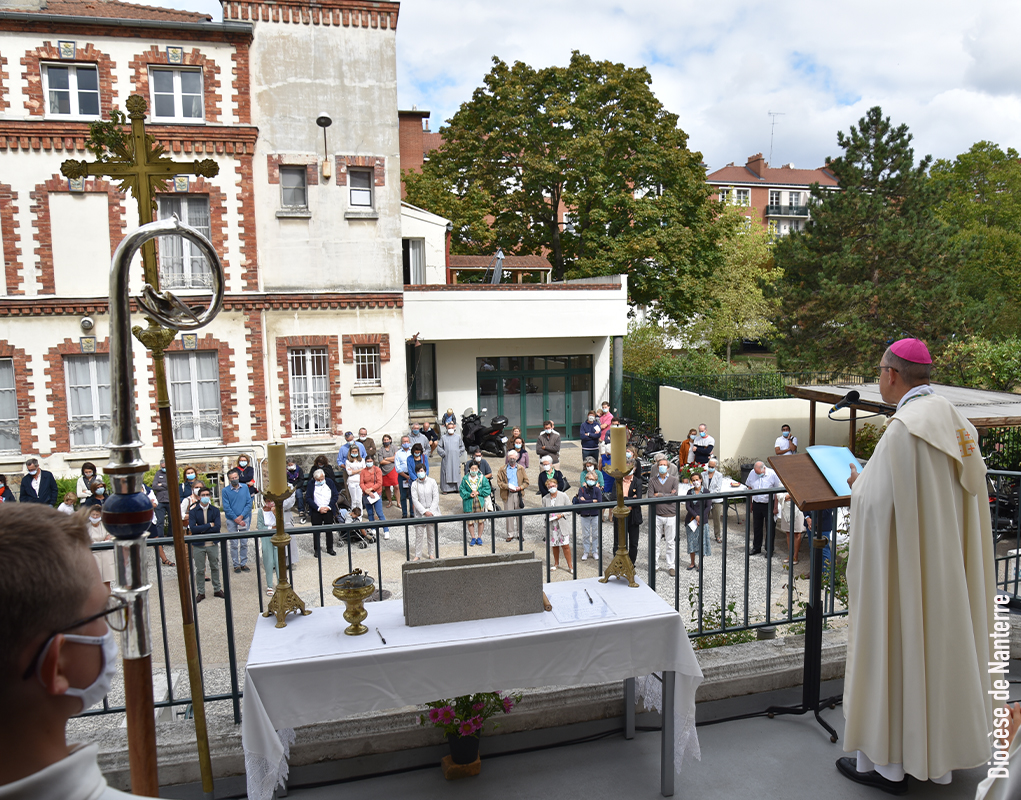 « Dix ans, il aura fallu dix ans, trois évêques, deux économes diocésains et trois économes paroissiaux » entre l’idée et l’achèvement final d’un vaste chantier à triple facettes dont Mgr Matthieu Rougé vient de mettre le point final, dimanche, par sa bénédiction solennelle. Retour en arrière. Alors qu’il n’est curé de Sainte-Cécile à Boulogne-Billancourt (92) que depuis trois ans, le frère Barthélemy Port, de la communauté Saint-Jean, reçoit la mission, avec une solide équipe, d’ouvrir sur la rue de l’Est cette paroisse non visible de la rue. Il s’entoure d’un réseau de spécialistes et devient lui-même expert en droit de l’urbanisme, comme l’a souligné Pierre-Christophe Baguet, le maire de la ville, venu à l’inauguration avec son épouse, tous deux ardents défenseurs du chantier, comme les nombreux donateurs et financeurs, dont les Chantiers du Cardinal.