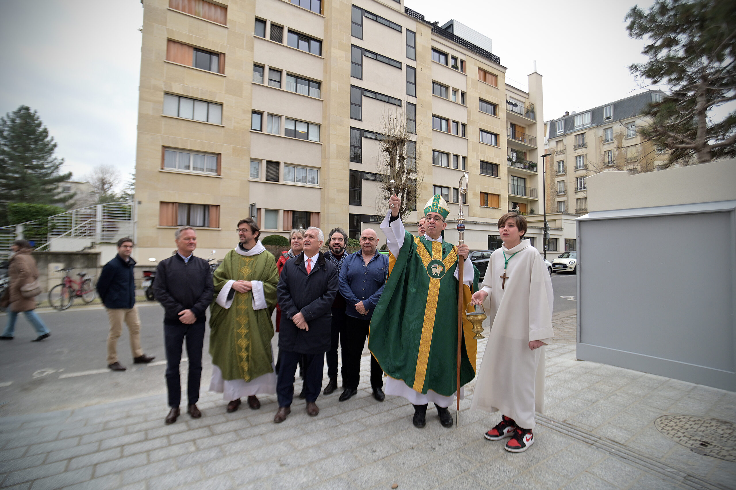 Sur le parvis, bénédiction des locaux de la paroisse Ste-Cécile à Boulogne (92) Janvier 2023 GF/CDC