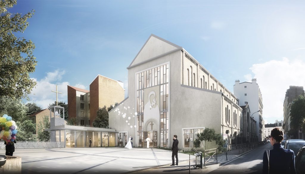 Modification de la façade de Notre-Dame-du-Perpétuel-Secours à Asnières-sur-Seine (92) Projet de DQ Architecture