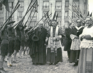 Le cardinal Verdier lors de la bénédiction du terrain où s’élèvera bientôt l’église Sainte-Odile à Paris. (Archives CDC)