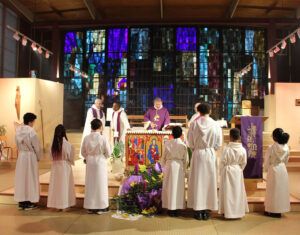 Messe en l’église Saint-Paul de la vallée aux Renards à Fresnes-L’Haÿ-les-Roses (94) lors de la bénédiction du mobilier liturgique le 4 décembre 2022. (CDC)