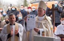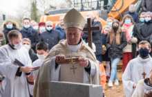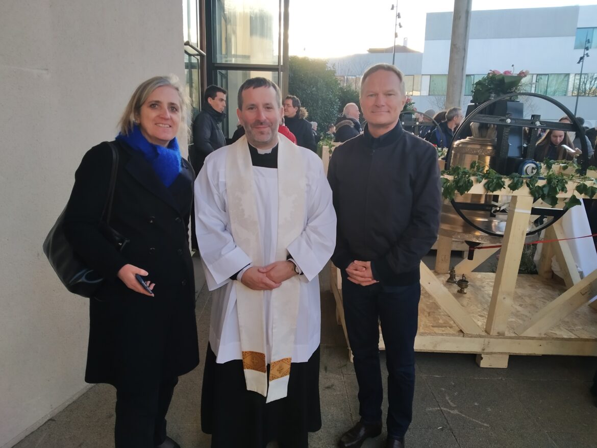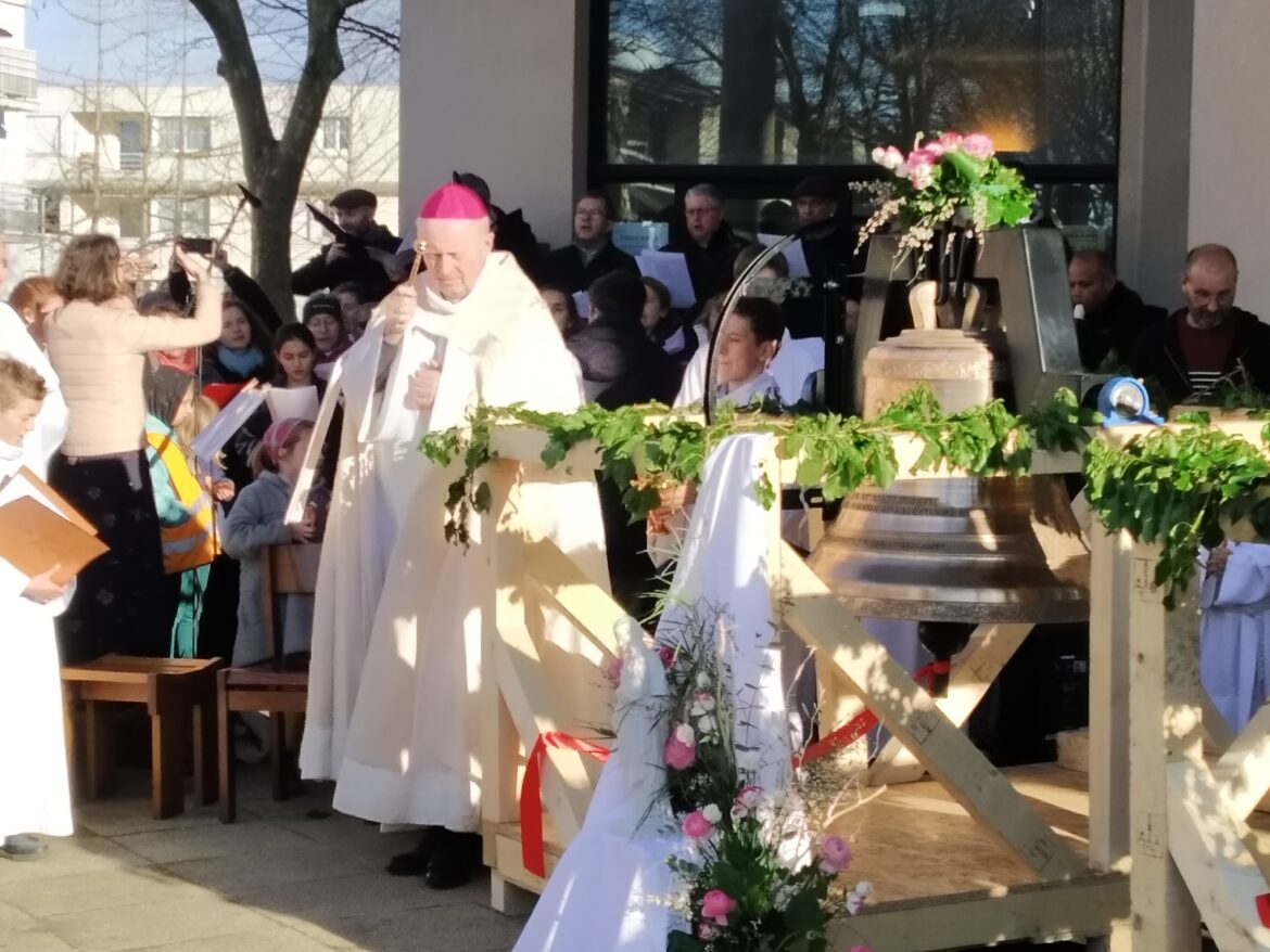 Un apéritif permet ensuite de grands moments de convivialité et de faire davantage connaissance avec Dominique Varry, délégué des Chantiers du Cardinal d’une paroisse voisine qui a tenu à venir s’associer à l’événement. Pour ce dernier, « cette bénédiction des cloches est une belle étape dans la construction de Saint-Joseph-le-Bienveillant. Ces trois superbes cloches de bronze massif ont vocation, non seulement à appeler les fidèles à la prière, mais aussi à sonner pour tous les habitants les heures, les joies et les peines, demain et pour les générations à venir. Nombreuses sont les cloches qui sonnent depuis plusieurs siècles. Construire une nouvelle église, c’est en effet s’inscrire dans le temps long… et ouvrir une porte sur l’éternité. »