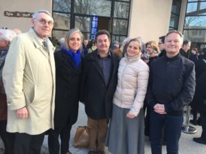 Bénédiction des cloches St-Joseph-Le Bienveillant Montigny-Voisins le 19 mars 2023. D. Varry (Délégué des CDC) A Fabre MMM Paccard (de la fonderie Paccard) JP Gaspard