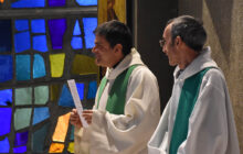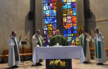 Mgr Thibault Verny, évêque accompagnateur des Chantiers du Cardinal, évêque auxiliaire et vicaire général du diocèse de Paris, concélèbre la messe d’action de grâce avec le père Scheffels, les pères Hubert Louvet, Arnaud Bonnassies et Gérard Pelletier. Chacun d’eux est actuellement nommé dans une paroisse bénéficant de travaux financés par les Chantiers du Cardinal. Dans son homélie, Mgr Verny insiste sur « l’opposition de la mort et de la vie » qui ressort de l’Évangile du jour selon Saint Luc (20,27-40). « Les temps sont rudes pour l’Église. Nous ne vivons pas une période de mort, mais une période de vie. Il faut faire en sorte que les scandales ne se reproduisent plus. N’ayons pas peur que les dossiers sortent», poursuit-il. Avant de conclure que « Nous construisons pour les générations à venir, c’est notre chemin de vie. Soyons porteurs de bonnes nouvelles en alliant les exigences et l’espérance. »