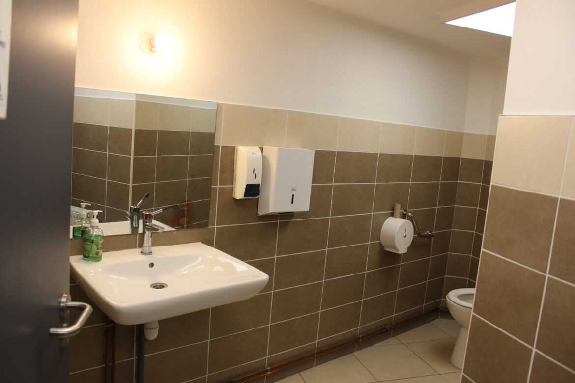 WC réaménagés pour l’accessibilité PMR du centre paroissial Saint-Charles de Lésigny