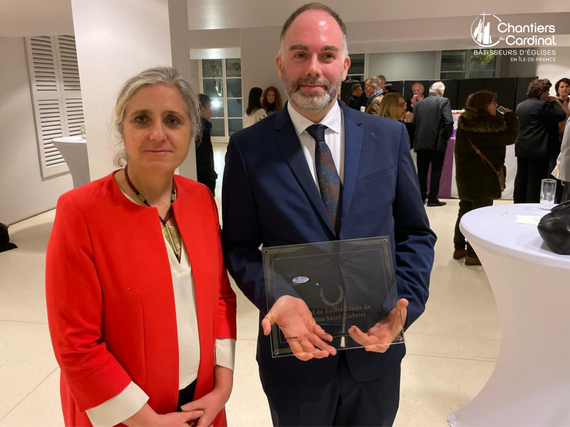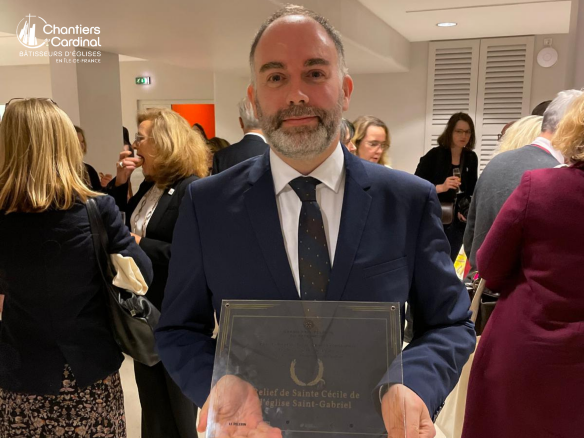 L’archidiocèse de Paris décide alors de financer un lieu de culte plus vaste, à proximité, à l’emplacement d’une usine à gaz démolie en 1932-1933. Le cardinal bâtisseur Jean Verdier (celui qui est à l’origine de l’œuvre des Chantiers du cardinal) lance l’édification de la paroisse Saint-Gabriel, entre 1934 et 1935. Il y transfère une partie des œuvres de la chapelle dont le relief de Sainte Cécile, bien abîmé par les pluies acides. « Pour le déménagement, les briques ont été disjointes, déposées et remontées dans la chapelle du Sacré-Cœur de Saint-Gabriel, en utilisant du béton sans en respecter l’épaisseur initiale. L’objectif de la restauration est donc d’atténuer visuellement la présence de ces joints, de nettoyer le relief et de lui donner une cohérence colorimétrique, et de réparer les fêlures et les cassures des personnages », détaille Christian Brunel-Laurent. En tant que chargé de projet à la commission diocésaine d’art sacré, c’est lui qui a reçu à la Cité de l’architecture le 34e prix Pèlerin dans sa catégorie, en présence d’une grande partie de la rédaction du plus vieil hebdomadaire de la presse française, de Mgr Olivier Ribadeau Dumas, le nouveau recteur de Notre-Dame de Paris, et de Jean-Charles de Castelbajac, le créateur visionnaire et inspiré de la nouvelle paramentique de la cathédrale baptisée « le rayonnement ».