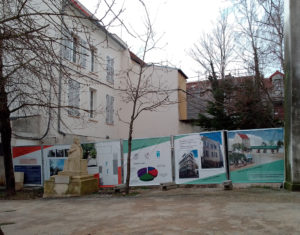 Des bâches expliquant le projet de construction sont installées devant le chantier. (Paroisse de Meaux)