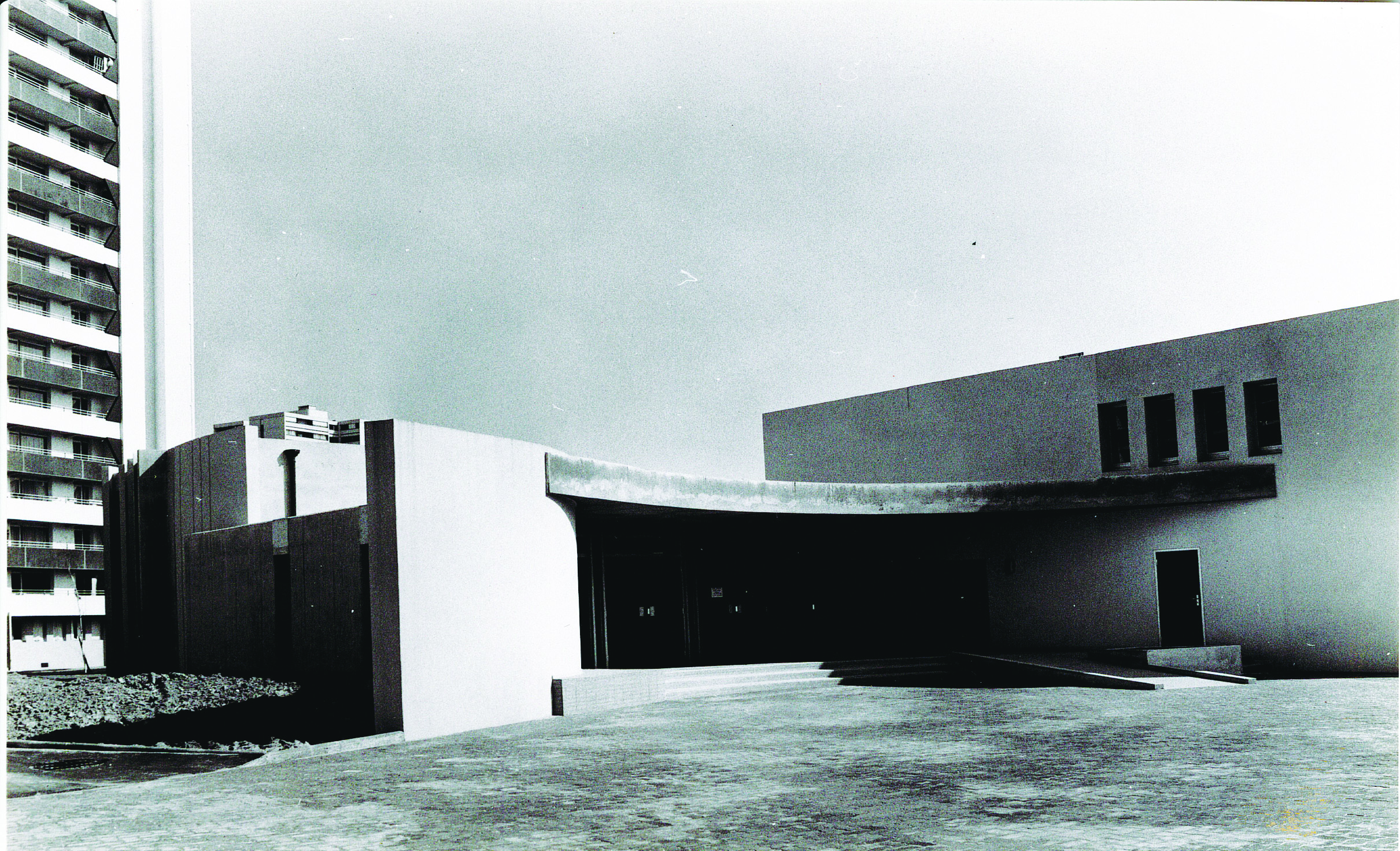 Vue de la cathédrale de Créteil lors de sa construction dans les années 1970. (Archives CDC)