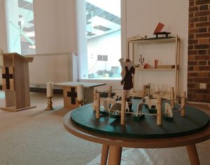 Le matériel de l’École du Bon Berger est installé dans la chapelle devenue atrium.