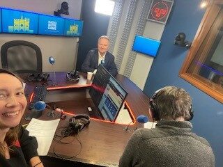 A quelques minutes de la prise d’antenne dans le studio de Radio Notre Dame. Jean-Pierre Gaspard au micro de Marie-Leïla Coussa (RND)