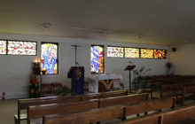 Pendant les travaux, les fidèles se retrouvent dans la petite chapelle Saint-Martin pour les célébrations. « C’est un membre de la paroisse qui a repeint les murs » précise le père Maniacki en ouvrant la porte en bois donnant sur le petit cloître fleuri. Les paroissiens sont attachés à leur centre Saint-Martin, et ils se mobilisent aussi pendant le chantier. Certains vont donner un coup de main pour installer la nouvelle cuisine dans la partie privative. Le budget étant serré il faut faire appel aux bonnes volontés. « Il y a de la convivialité dans cette paroisse » se réjouit le père Maniacki.