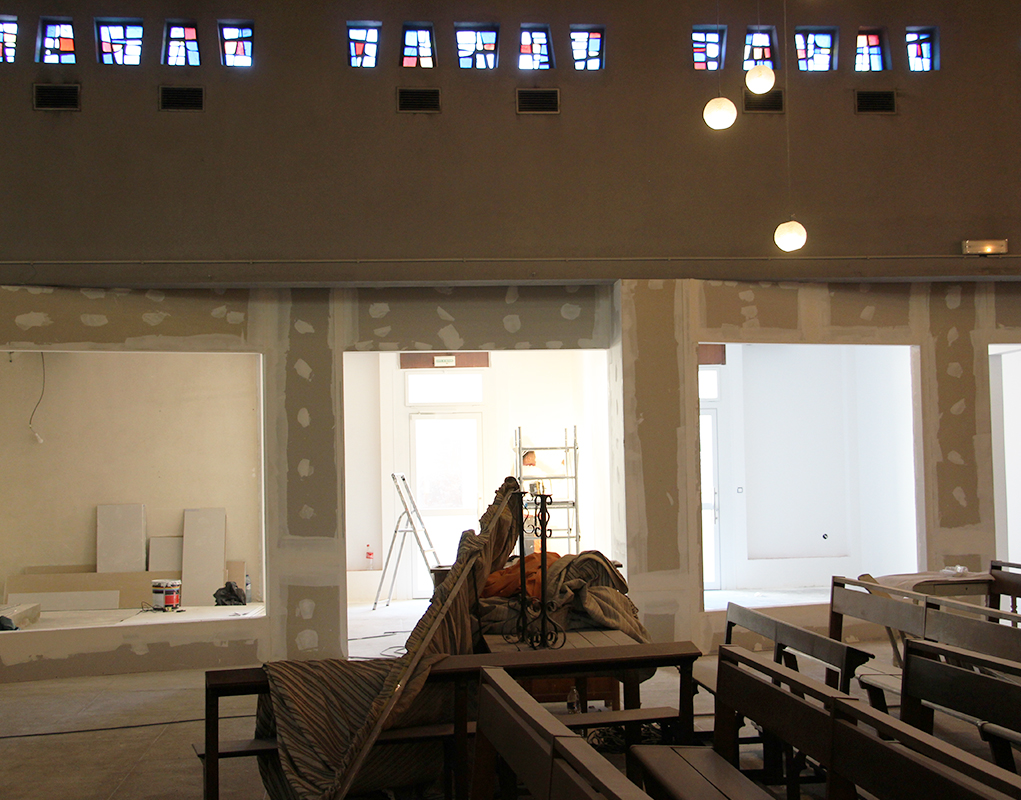 D’ici là, le gros du travail se concentre dans une partie de l’église : un bureau d’accueil et des salles de réunions sont créées sur l’un des côtés de l’église. Ces travaux devraient être terminés pour le début du mois d’avril, sans doute pour les Rameaux. La réunion de chantier de ce mercredi est justement l’occasion de revoir l’organisation des bancs pour conserver la capacité d’accueil (plus de 300 places).