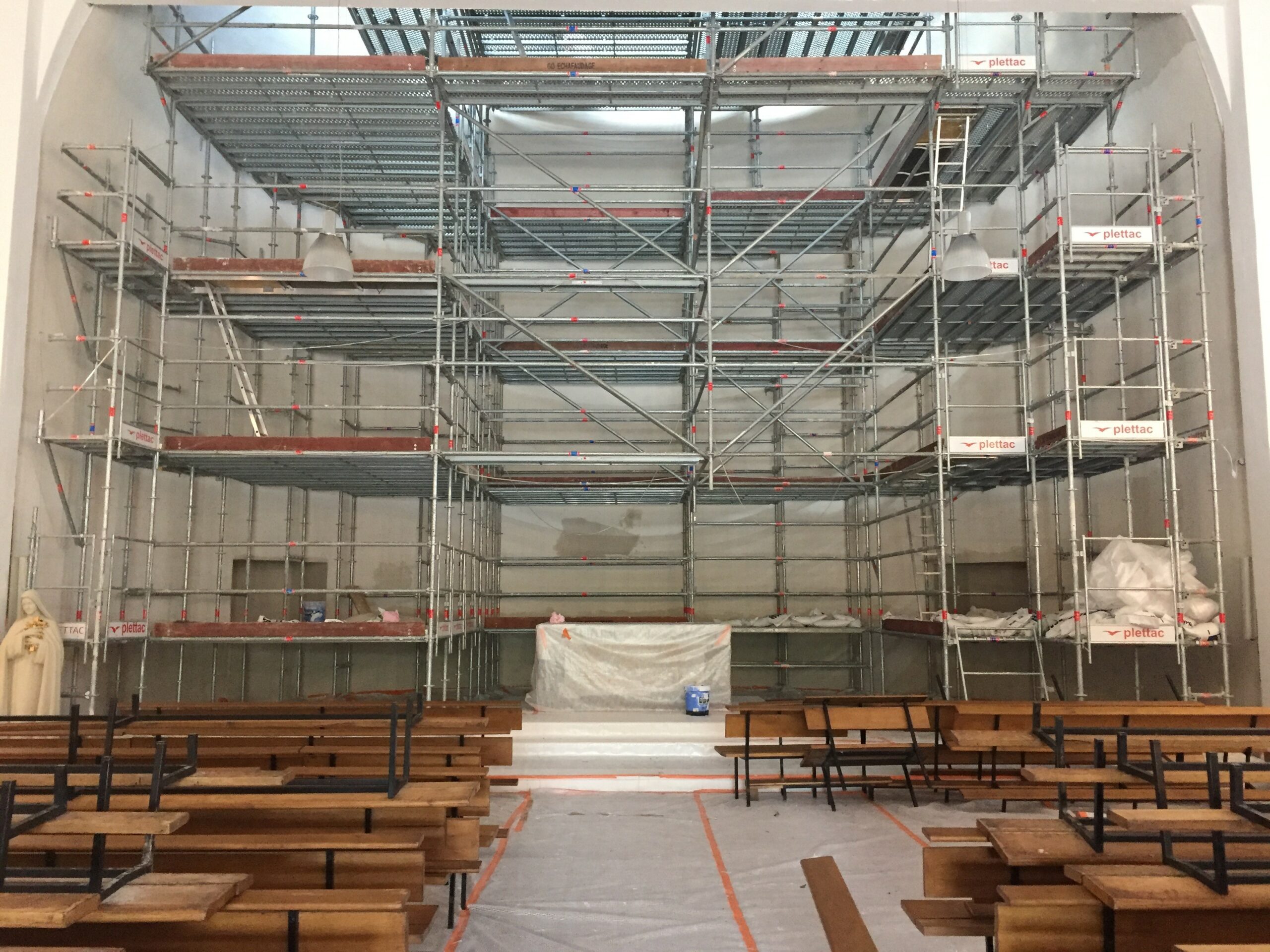 Echafaudage dans le choeur de l’église Sainte-Claire d’Assise à Paris (Septembre 2022) (PSM/CDC)