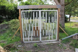 Prototype de portail qui clôt le bâtiment. Le motif stylisé est une évocation des branches d’arbres. (crédit CDC)