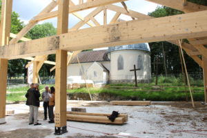 Autour de l’architecte Philippe Roux, l’équipe de l’agence lors d’une réunion de chantier. (Crédit CDC)
