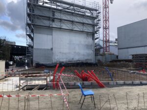 Avancée des travaux au 12 avril 2023, vue sur le futur centre paroissial