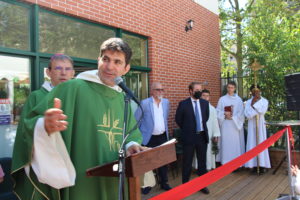 Quelques minutes avant l’inauguration du café, la paroisse remercie les donateurs et les financeurs du projet. (Crédit CDC)
