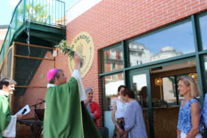 Mgr Blanchet bénit le café paroissial. (Crédit CDC)