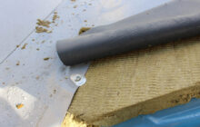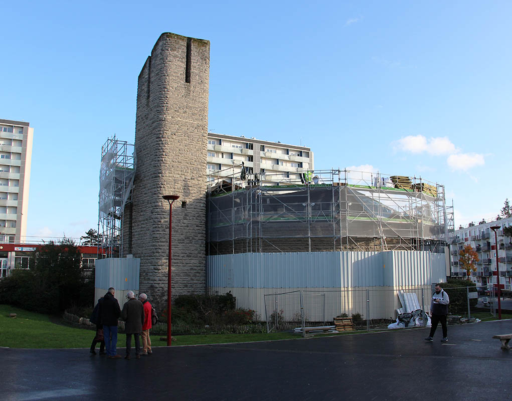 Sous la nouvelle membrane étanche, de larges plaques de laine de verre rendent le bâtiment mieux isolé. Eglise St-François d'Assise à Gonesse, novembre 2022. (CDC)
