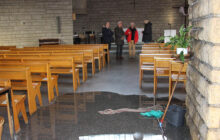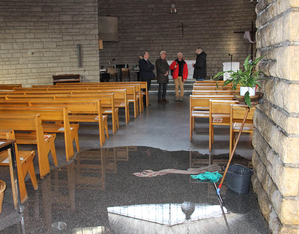 Par temps de pluie, l'eau rentre dans l'église par le toit... Eglise St-François d'Assise à Gonesse, avant travaux. Novembre 2022. (CDC)