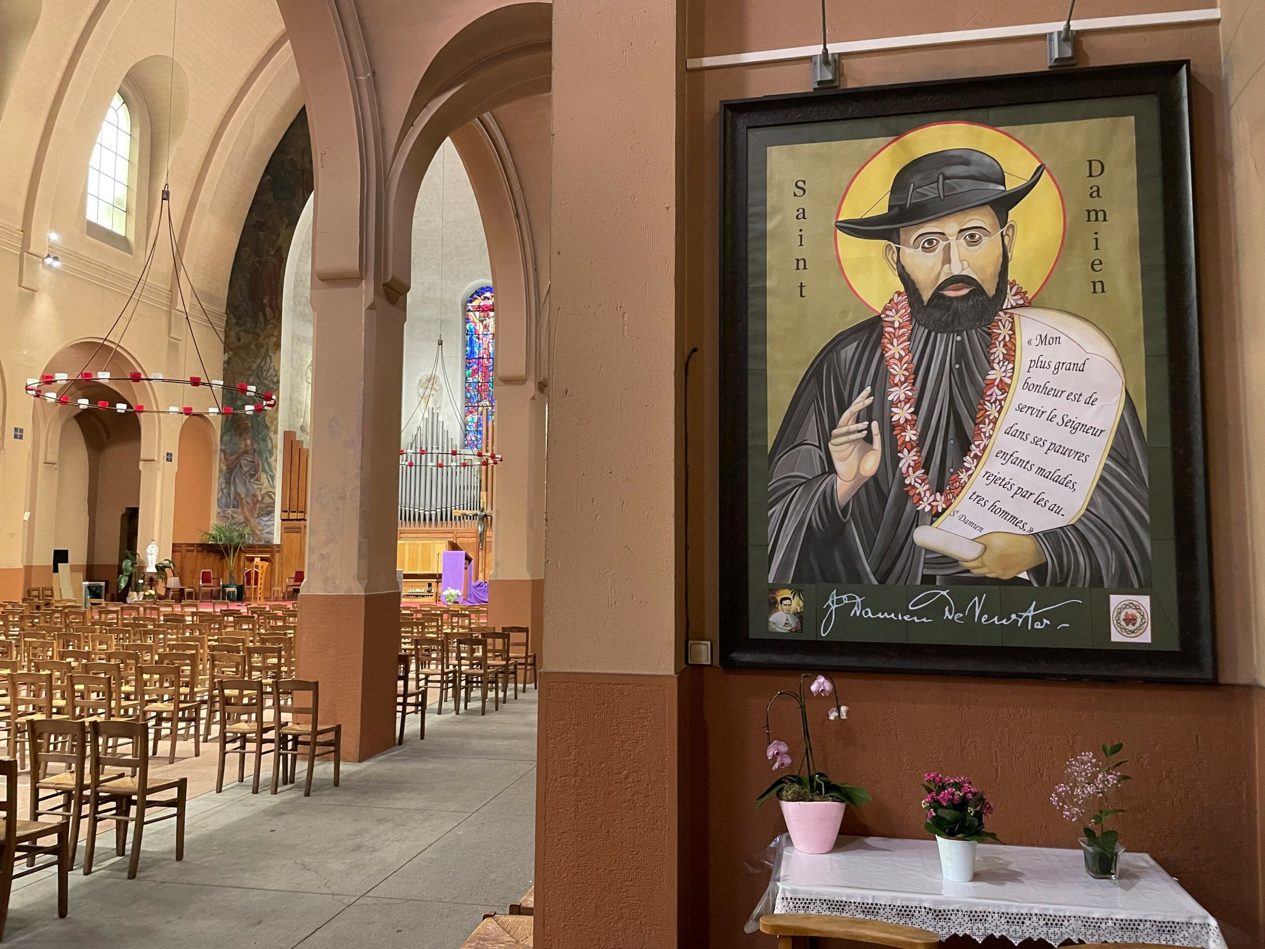 Une chapelle est dédiée à saint Damien de Veuster, l’apôtre des lépreux de Molokaï. Église Saint-Gabriel (Paris 20e) (JdP/CDC)