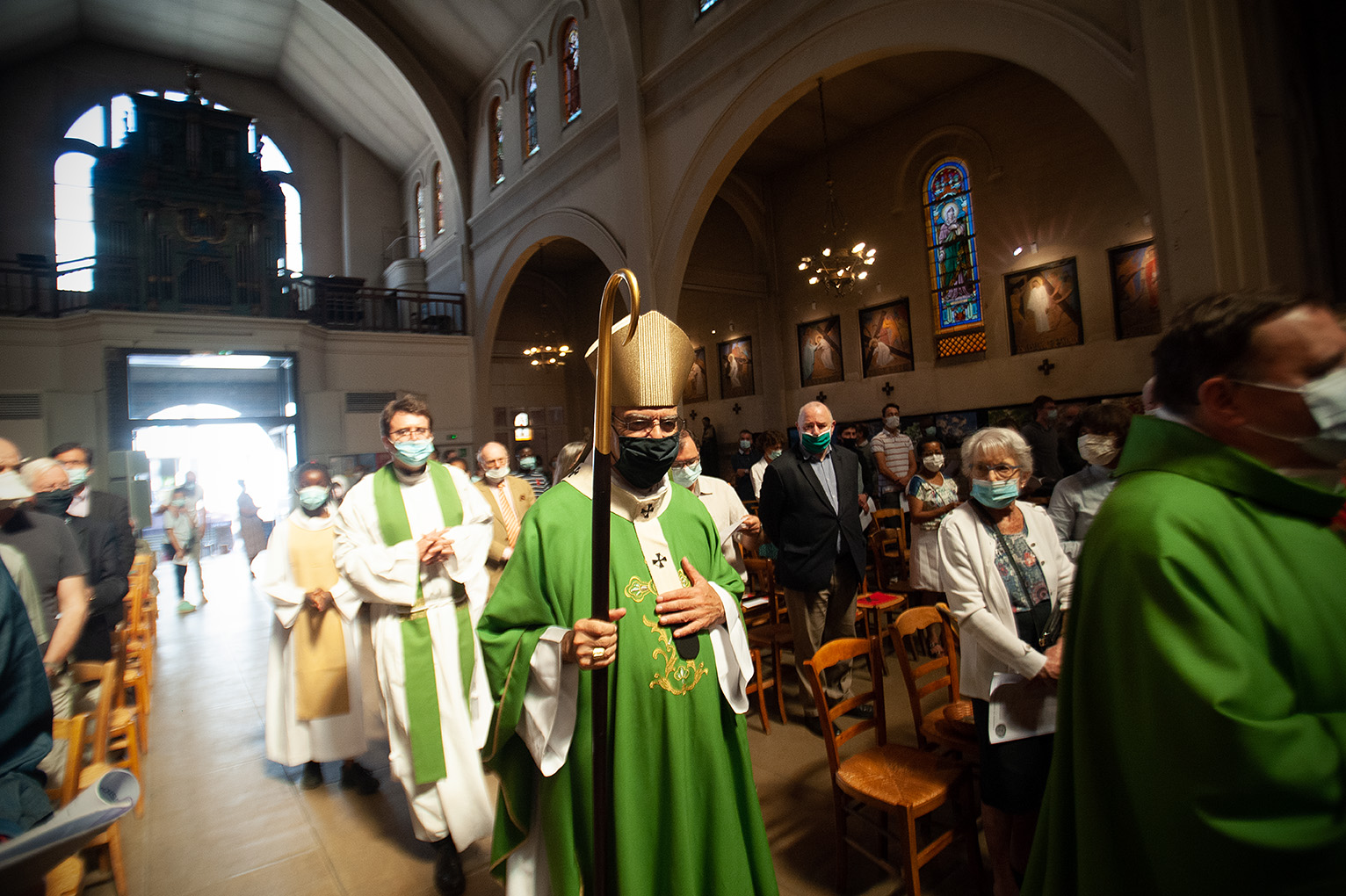 Dimanche 13 juin, Mgr Aupetit célèbre la messe dans l’église Saint-Joseph-des-Epinettes (Paris) (Crédit GF/CDC)