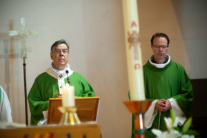 Mgr Aupetit, archevêque de Paris et le père Emmanuel Végnant, curé de la paroisse. (Crédit GF/CDC)