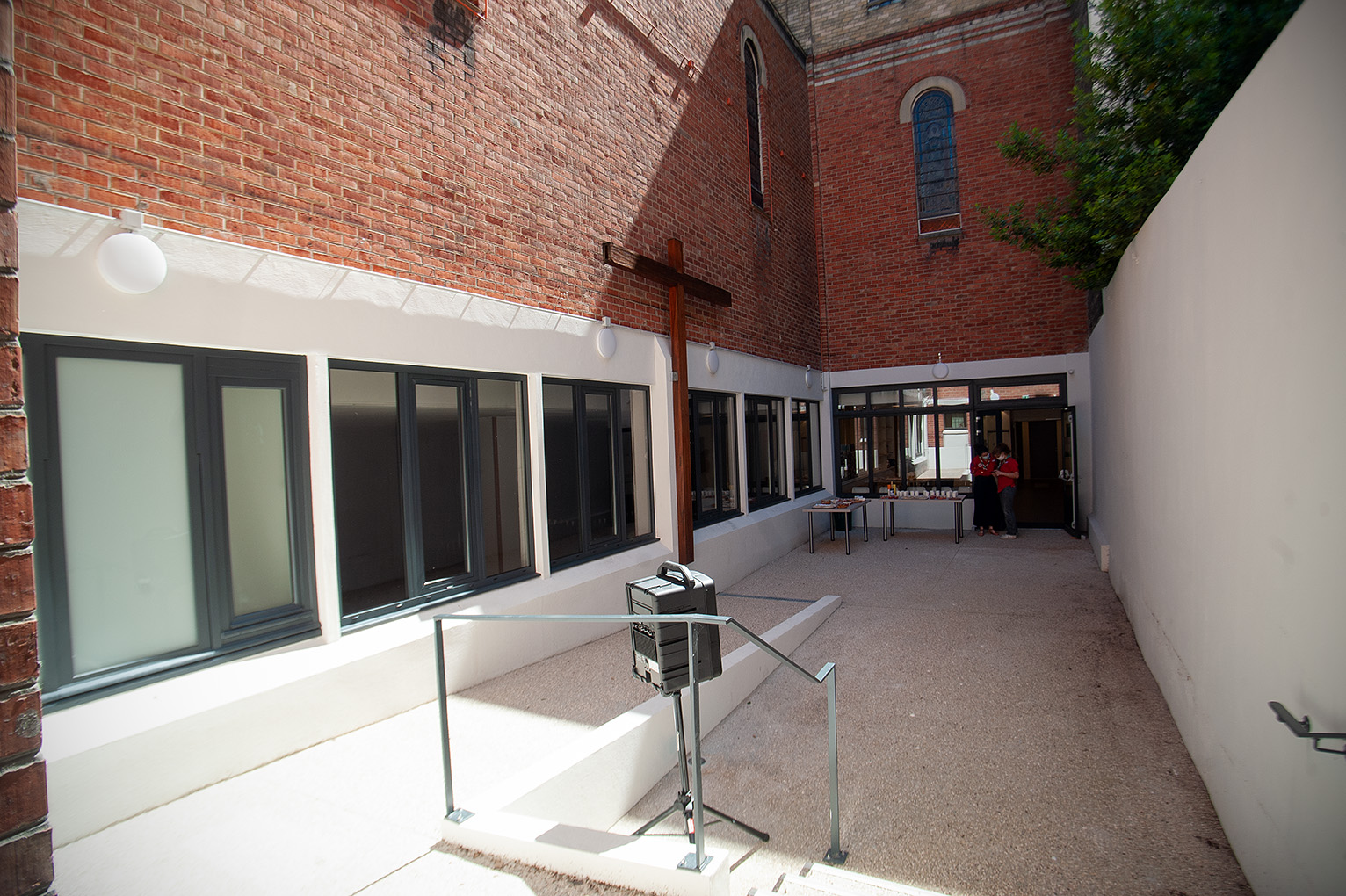 Un accès PMR a été créé dans la petite cour de l’église. (CDC)